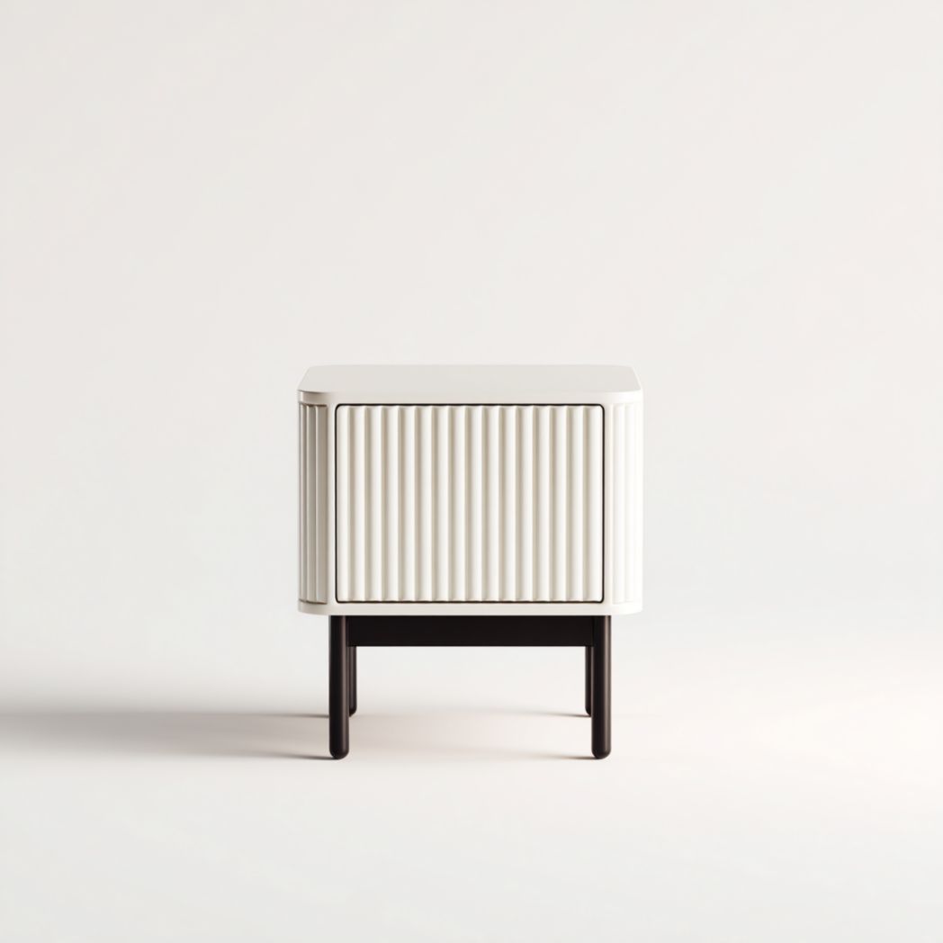 Table de chevet en MDF rainuré avec porte et pieds en métal