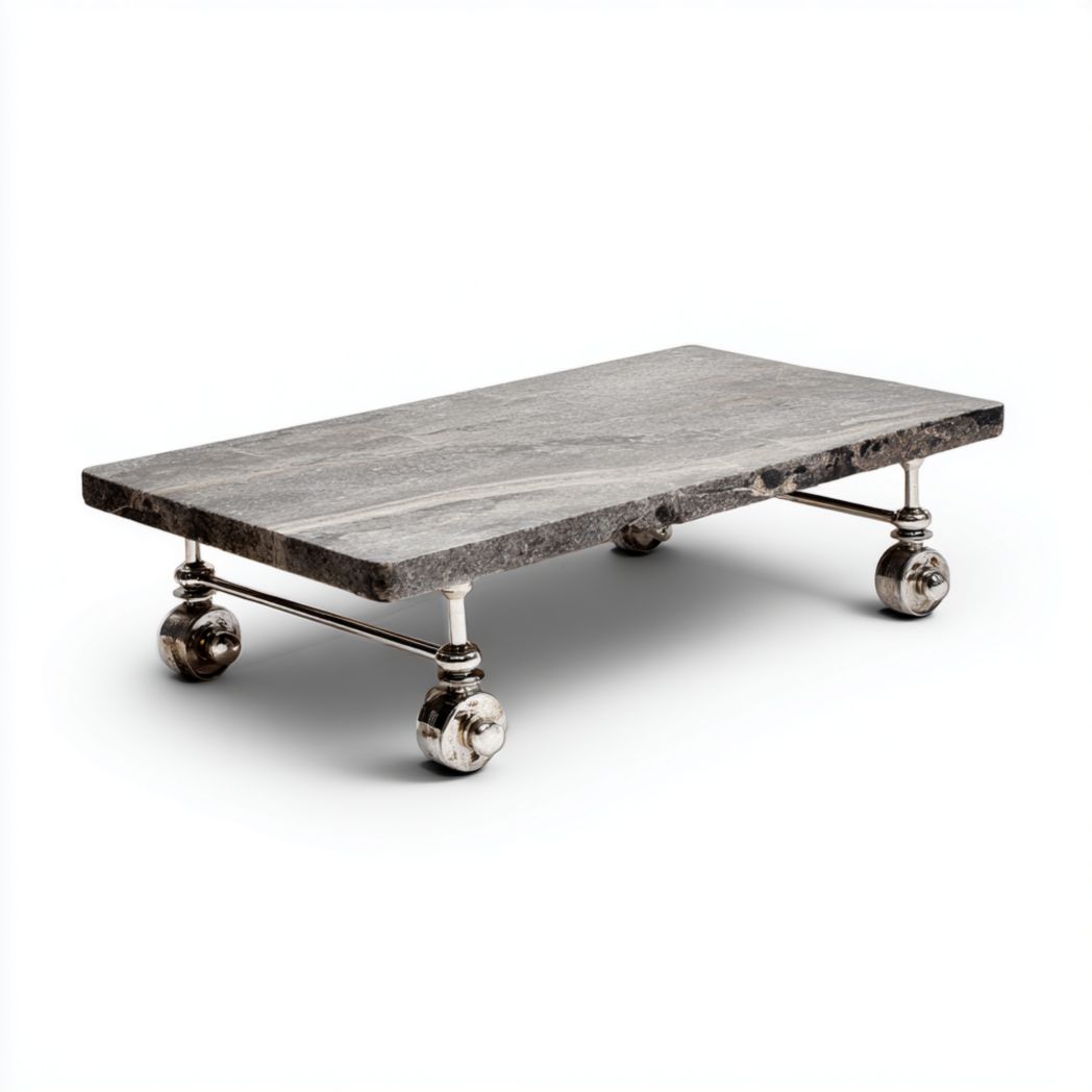 Table basse rectangulaire en marbre gris avec roulettes en acier chromé€117,00Describe your product